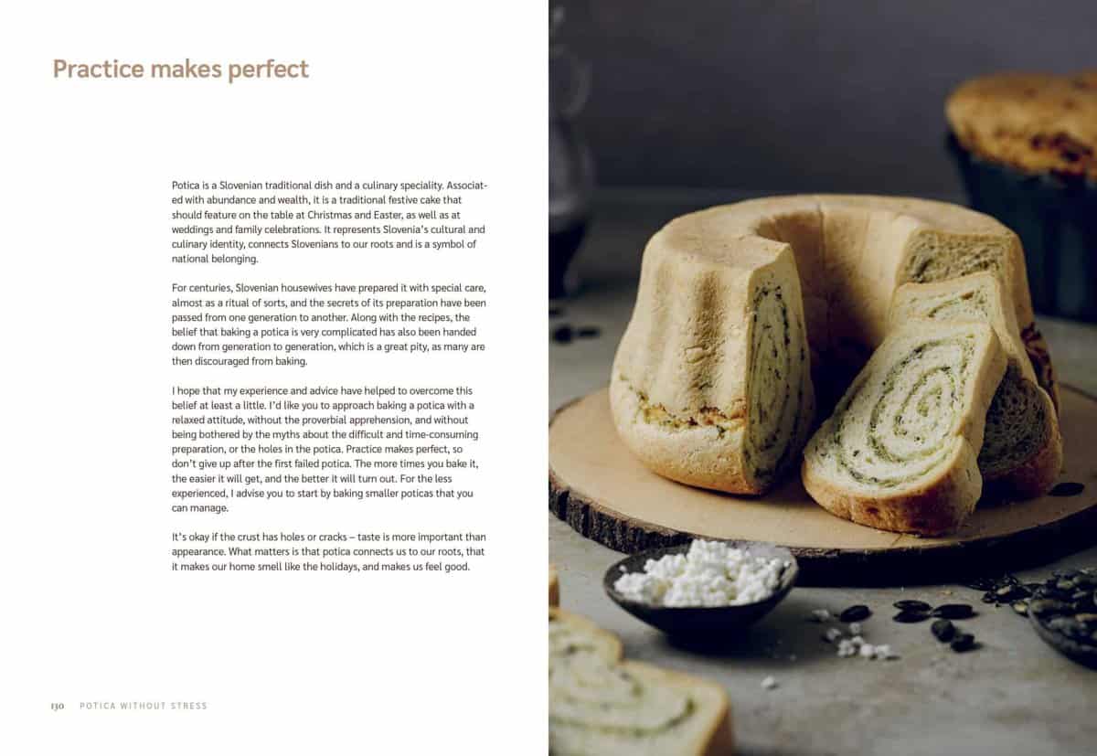The book offers a selection of recipes for traditional sweet and savoury poticas often prepared in Slovenian homes. It also presents recipes for modern upgrades that better suit today’s culinary trends.